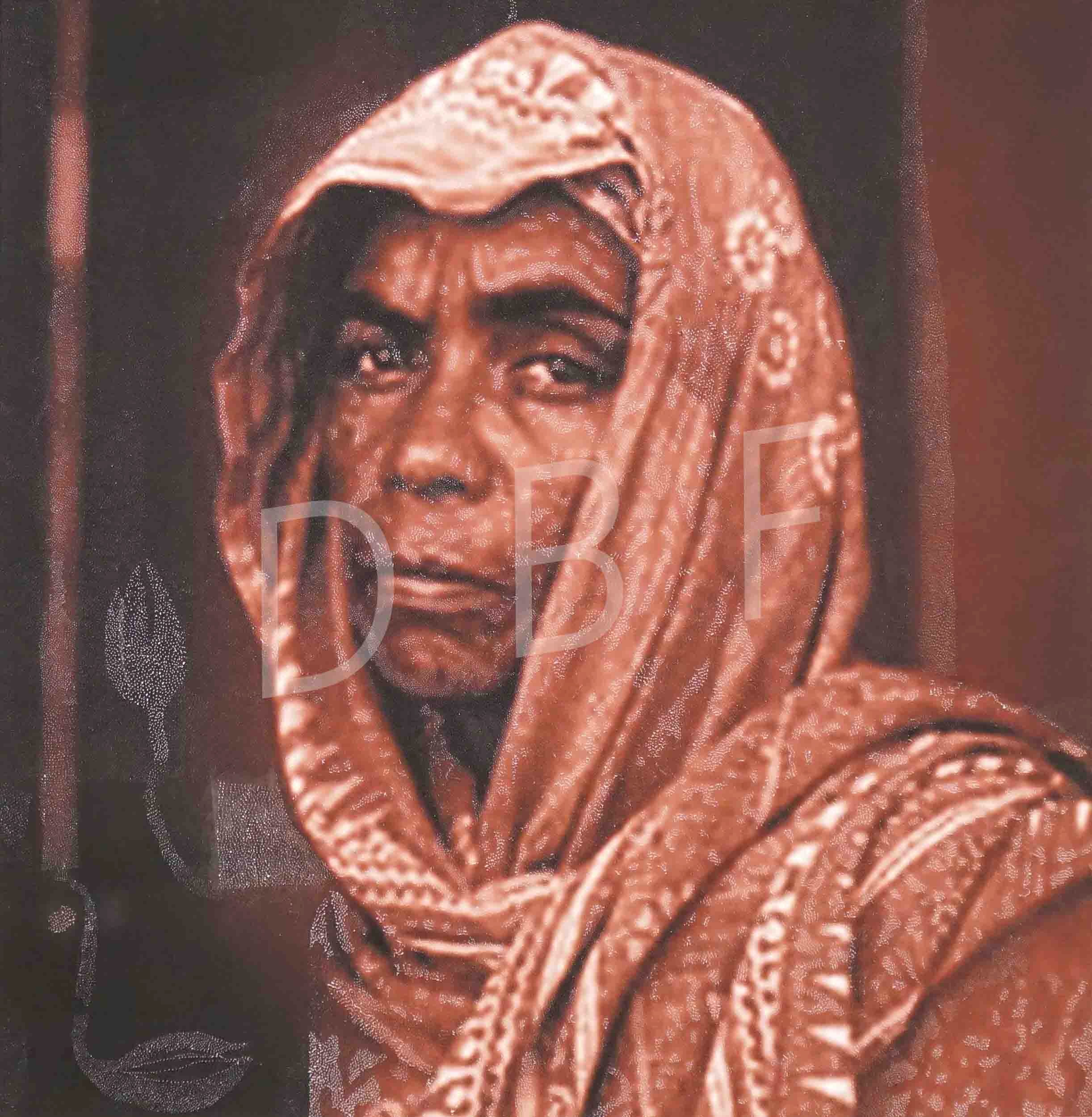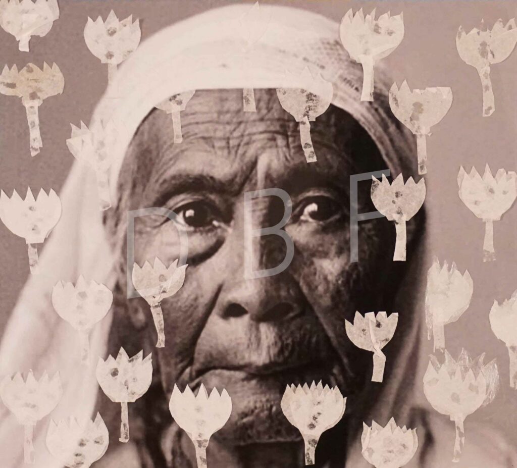 “Parables of Womb” is one of 10 portraits from the installation series by the same. It was first exhibited in the 2020 Dhaka Art Summit. To express the story of our Biranganas(war Hero), Dilara Begum Jolly, picked up the only form of art still free from the patriarchal influence, Nakshi Kantha. She used repetitive but meditative needle piercing on all ten portraits of women who fought in the liberation war of Bangladesh, lived through the trauma, and challenged the narrative of our existing society. She considers all of them together as one art piece hence, during the exhibition, she put the portraits in lightboxes and arranged them in a dimly lit room and provoked us to walk in their shoe. She asks to be the source of light in a world of darkness and terror.