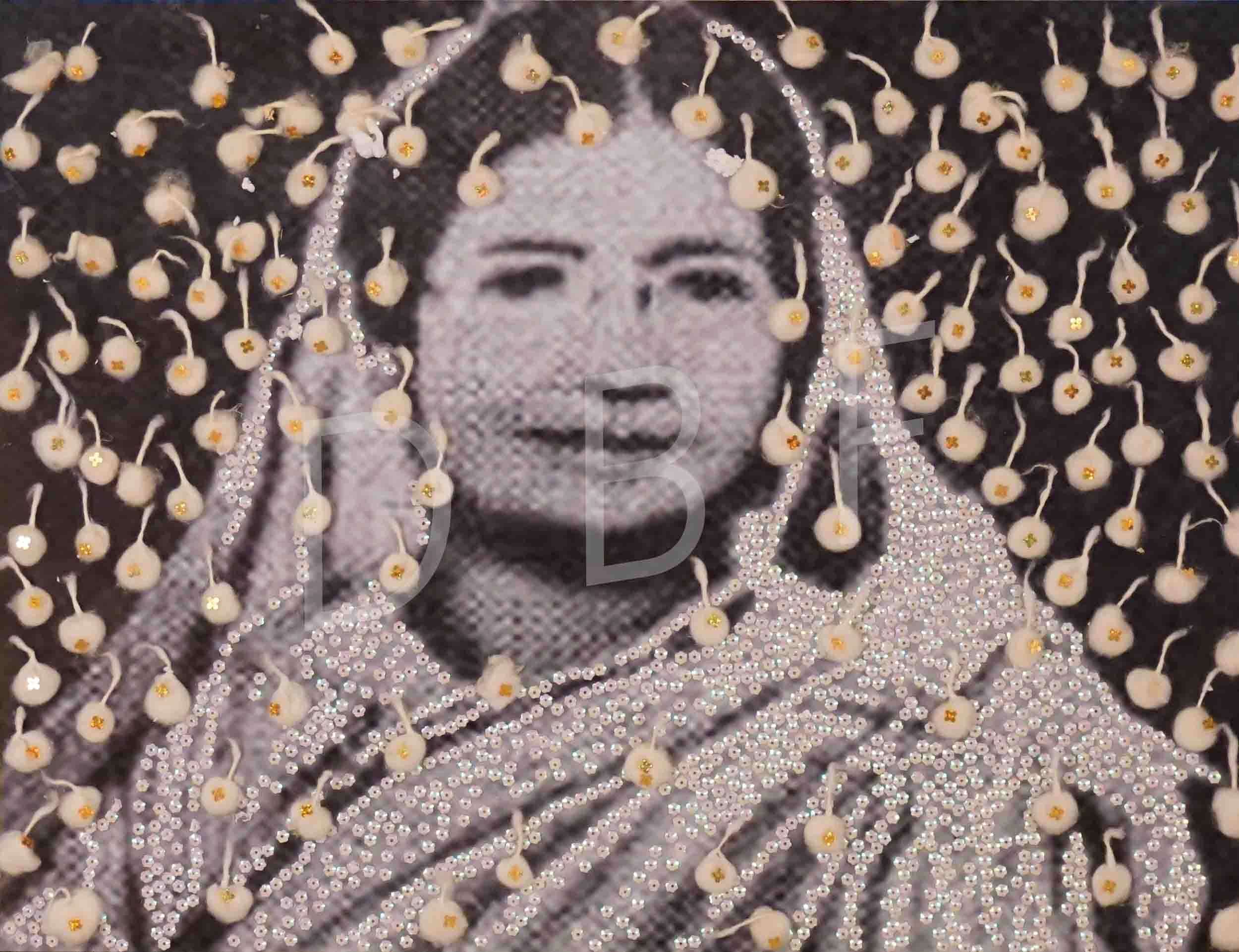 Dilara Begum Jolly’s work explores strife, political turmoil, and gender identity. She touches upon themes of gender, trauma, and the female body. Initially trained as a painter, she has expanded her practice to include various media such as performance, video, and sound. Jolly has developed a signature practice of needling on paper and, more recently, photographs – a painstaking process during which she draws motifs on paper, or highlights areas on photographs, through needle prickling.