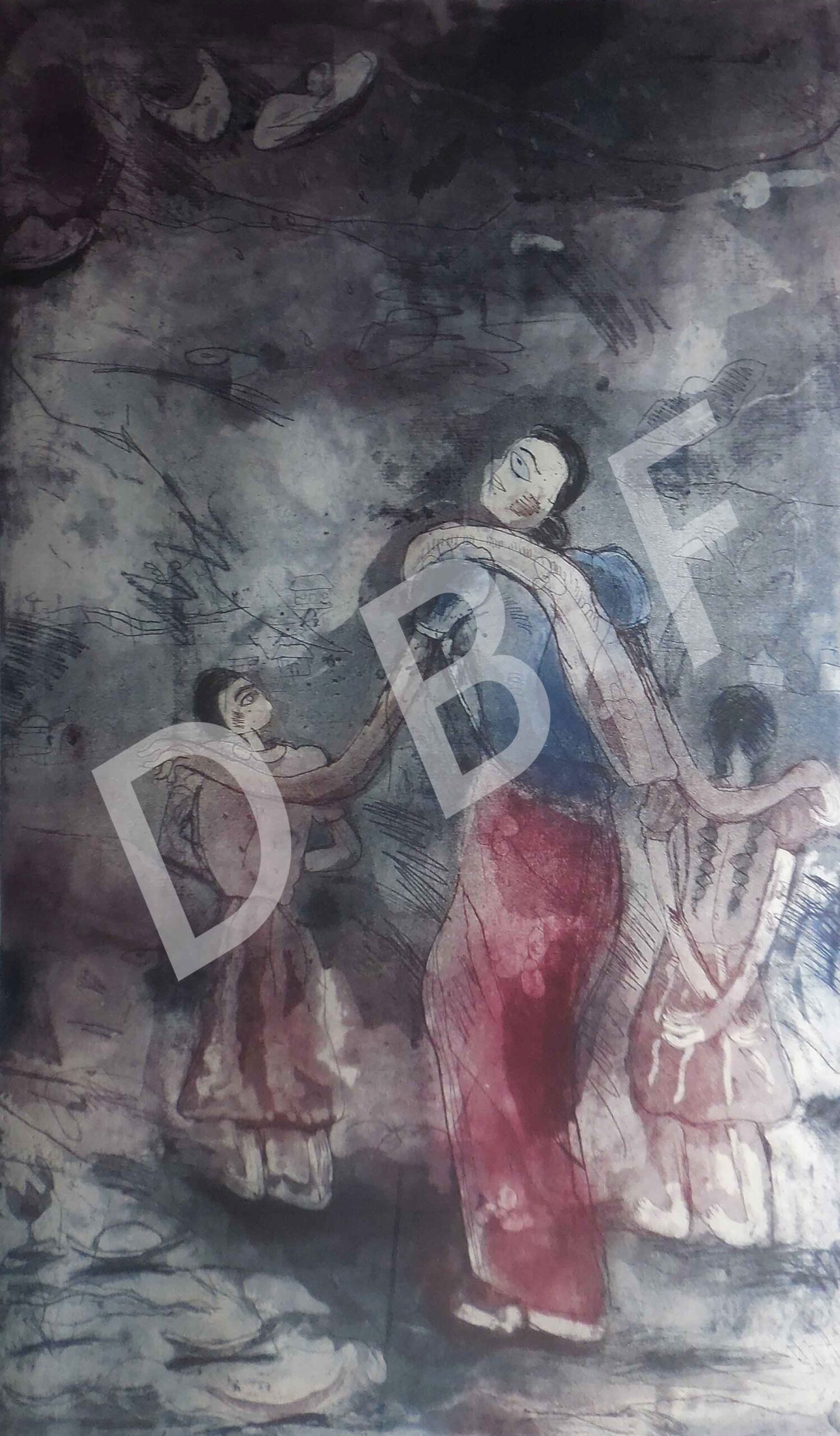 Rokeya Sultana was born in Chittagong in 1958. After graduating from the Bangladesh College of Arts and Crafts in 1980, she received a master’s degree in printmaking from Visva Bharati, Santiniketan, in 1983. She has exhibited widely. Sultana is the recipient of numerous national and international scholarships and awards, including a prestigious Fullbright grant, which supported her nine-month artist’s residency at the University of Nebraska-Lincoln. She is currently a Professor of Printmaking at Dhaka University. Notable among her awards are the Purchase Award, Somerstown Gallery, 4th Biennial, NY, USA (1992), Grand Prize in the 3rd Bharat Bhavan Print Biennale (1995), Bengal Foundation Award in the14th National Art Exhibition (1999), Honourable Mention in the 9th Asian Art Biennale (1999). In 2003, she availed a French government scholarship at L’Atelier Le Couriere et Frelaut in Paris.